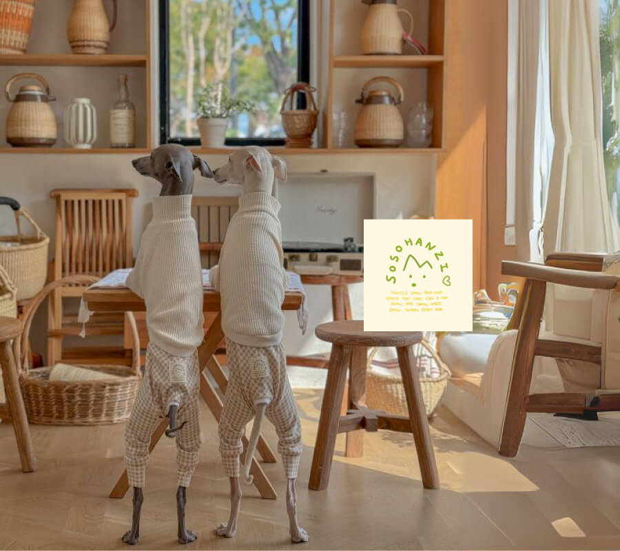 sosohanzi(ソソハンジ)は、イタリアングレイハウンドのために生まれた韓国のウェアブランド。